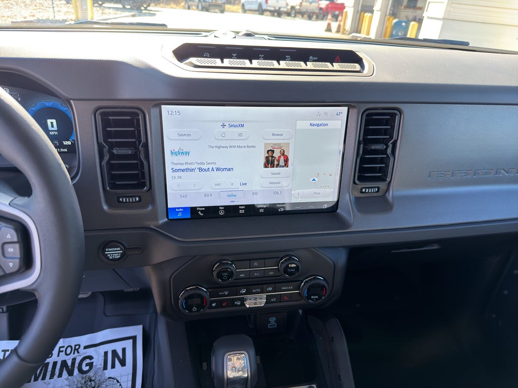 Bluetooth® technology is built into this Ford Bronco, keeping your hands on the steering wheel and your focus on the road. This 1/2 ton suv offers Apple CarPlay for seamless connectivity. Start the vehicle from inside with remote start. This vehicle is pure luxury with a heated steering wheel. See what's behind you with the back up camera on this unit. This vehicle offers Android Auto for seamless smartphone integration. This 1/2 ton suv has a V6, 2.7L high output engine. It has four wheel drive capabilities. This 2025 Ford Bronco gleams with a flashy red exterior. It is equipped with a gasoline engine. The fog lights cut through the weather so you can see what's ahead. Electronic Stability Control is one of many advanced safety features on the vehicle. This Ford Bronco comes with a manual transmission. Easily set your speed in the vehicle with a state of the art cruise control system. Increase or decrease velocity with the touch of a button.