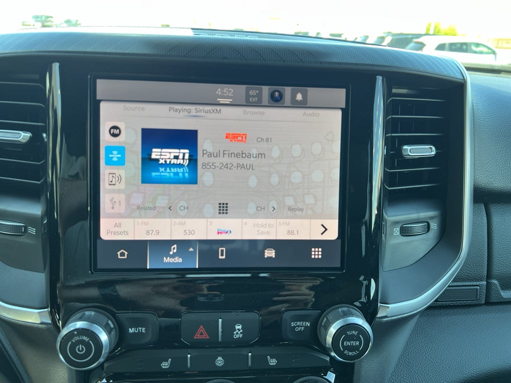 Big Horn Level 2 Equipment Group: Blind Spot and Cross Path Detection; Rear View Auto Dim Mirror; Power Adjustable Pedals; Rear Power Sliding Window; Rear Dome with On/off Switch Lamp; Glove Box Lamp; Auto Power-Folding Mirrors; Footwell Courtesy Lamp; Exterior Mirrors with Heating Element; Heated Front Seats; Mirror Running Lights; Heated Steering Wheel; Foam Bottle Insert (door Trim Panel); Black Exterior Mirrors; Exterior 115V AC Outlet; Dampened Tailgate; Premium Cloth Bucket Seats; Big Horn Instrument Panel Badge; Power-Adjustable Convex Aux Mirrors; Forward and Reverse Utility Lights; Locking Lower Glove Box; Remote Start System; 400W Inverter; 9 Alpine Speakers with Subwoofer; Power Heated Fold Telescopic Mirrors; Dual Wireless Charging Pad; Exterior Mirrors with Supplemental Signals; Steering Wheel Mounted Audio Controls; Exterior Mirrors Courtesy Lamps; Dual Glove Boxes; 115-Volt Auxiliary Front Power Outlet; Cluster 7.0" TFT Color Display; Universal Garage Door Opener; Power Adjust Mirrors; Luxury Steering Wheel; 2nd Row in Floor Storage Bins; Power Telescoping Mirrors; Sun Visors with Illuminated Vanity Mirrors. Cold Weather Group: Engine Block Heater; MOPAR Winter Front Grille Cover. Quick Order Package 24Z Big Horn. Blind Spot and Cross Path Detection. Bed Convenience Group. LT275/70R18E OWL On/off Road Tires. Premium Cloth Bucket Seats. Remote Start System. Power 2-Way Driver Lumbar Adjust. **Equipment listed is based on original vehicle build and subject to change. Please confirm the accuracy of the included equipment by calling the dealer prior to purchase.**