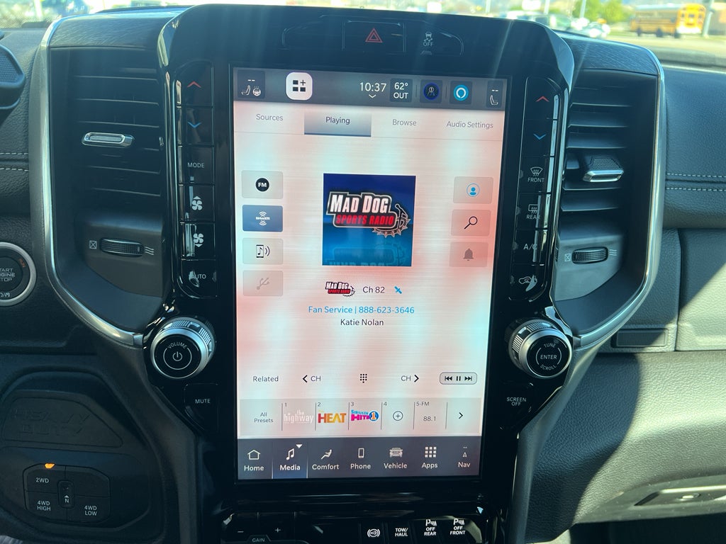 You'll never again be lost in a crowded city or a country region with the navigation system on the Ram 3500. This Ram 3500 is pure luxury with a heated steering wheel. The leather seats in this 1 ton pickup are a must for buyers looking for comfort, durability, and style. See what's behind you with the back up camera on this 1 ton pickup. This unit offers Apple CarPlay for seamless connectivity. Bluetooth® technology is built into it, keeping your hands on the steering wheel and your focus on the road. Start this unit from inside with remote start. The vehicle's Forward Collision Warning feature alerts drivers to potential front-end collisions. This Ram 3500 has auto-adjust speed for safe following. This model comes equipped with Android Auto for seamless smartphone integration on the road. Maintaining a stable interior temperature in this 1 ton pickup is easy with the climate control system.