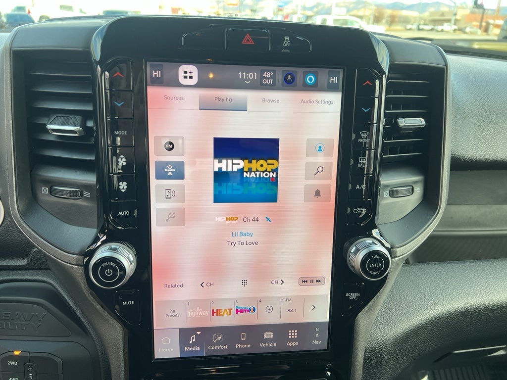 Cold Weather Group: Engine Block Heater; MOPAR Winter Front Grille Cover. Tradesman Level 1 Equipment Group: Convenience Group; Google Android Auto; SiriusXM Radio Service; Rear View Auto Dim Mirror; For Details Visit DriveUconnect.com; For More Info. Call 800-643-2112; Rear Power Sliding Window; Integrated Voice Command with Bluetooth®; Connectivity - US/Canada; Emergency Vehicle Alert System (EVAS); Manual Folding Exterior Mirrors; 12" Touchscreen Display; Tinted Acoustic Windshield Glass; GPS Navigation; 4G LTE Wi-Fi Hot Spot; GPS Antenna Input; Exterior Mirrors with Heating Element; MOPAR Black Tubular Side Steps; SiriusXM with 360L; Global Telematics Box Module; Connected Travel and Traffic Services; Mirror Running Lights; Black Exterior Mirrors; Exterior 115V AC Outlet; Alexa Built-In; Carpet Floor Covering; Apple CarPlay; Power-Adjustable Convex Aux Mirrors; Off-Road Information Pages; Selectable Tire Fill Alert; Trailer Tow Pages; 400W Inverter; Cloth 40/20/40 Bench Seat; Disassociated Touchscreen Display; HD Radio; Power Heat Fold Telescopic Mirrors; Uconnect 5 Navigation with 12.0" Display Radio; Exterior Mirrors with Supplemental Signals; Exterior Mirrors Courtesy Lamps; Air Conditioning ATC with Dual Zone Control; 115-Volt Auxiliary Front Power Outlet; Manuarl Telescoping Mirrors; Power Adjust Mirrors; Front and Rear Floor Mats; ParkSense Front/rear Park Assist System. Quick Order Package 24A Tradesman. Bed Utility Group: MOPAR Spray in Bedliner; MOPAR Deployable Bed Step; LED Bed Lighting. 5th Wheel/gooseneck Towing Prep Group. MOPAR Black Tubular Side Steps. Cloth 40/20/40 Bench Seat. 50 Gallon Fuel Tank. Instrument Panel Mounted Auxiliary Switches. MOPAR Front and Rear Rubber Floor Mats. **Equipment listed is based on original vehicle build and subject to change. Please confirm the accuracy of the included equipment by calling the dealer prior to purchase.**