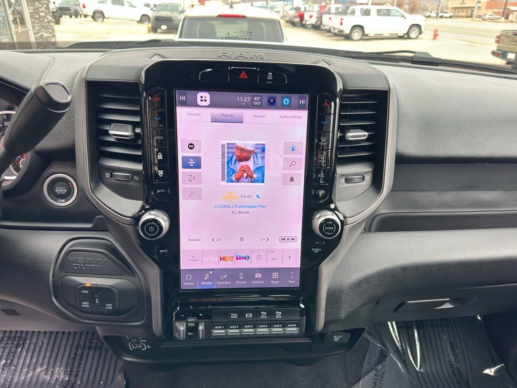 Cold Weather Group: Engine Block Heater; MOPAR Winter Front Grille Cover. Tradesman Level 1 Equipment Group: Convenience Group; Google Android Auto; SiriusXM Radio Service; Rear View Auto Dim Mirror; For Details Visit DriveUconnect.com; For More Info. Call 800-643-2112; Rear Power Sliding Window; Integrated Voice Command with Bluetooth®; Connectivity - US/Canada; Emergency Vehicle Alert System (EVAS); Manual Folding Exterior Mirrors; 12" Touchscreen Display; Tinted Acoustic Windshield Glass; GPS Navigation; 4G LTE Wi-Fi Hot Spot; GPS Antenna Input; Exterior Mirrors with Heating Element; MOPAR Black Tubular Side Steps; SiriusXM with 360L; Global Telematics Box Module; Connected Travel and Traffic Services; Mirror Running Lights; Black Exterior Mirrors; Exterior 115V AC Outlet; Alexa Built-In; Carpet Floor Covering; Apple CarPlay; Power-Adjustable Convex Aux Mirrors; Off-Road Information Pages; Selectable Tire Fill Alert; Trailer Tow Pages; 400W Inverter; Cloth 40/20/40 Bench Seat; Disassociated Touchscreen Display; HD Radio; Power Heat Fold Telescopic Mirrors; Uconnect 5 Navigation with 12.0" Display Radio; Exterior Mirrors with Supplemental Signals; Exterior Mirrors Courtesy Lamps; Air Conditioning ATC with Dual Zone Control; 115-Volt Auxiliary Front Power Outlet; Manuarl Telescoping Mirrors; Power Adjust Mirrors; Front and Rear Floor Mats; ParkSense Front/rear Park Assist System. Quick Order Package 24A Tradesman. Bed Utility Group: MOPAR Spray in Bedliner; MOPAR Deployable Bed Step; LED Bed Lighting. 5th Wheel/gooseneck Towing Prep Group. MOPAR Black Tubular Side Steps. Cloth 40/20/40 Bench Seat. 50 Gallon Fuel Tank. Instrument Panel Mounted Auxiliary Switches. MOPAR Front and Rear Rubber Floor Mats. **Equipment listed is based on original vehicle build and subject to change. Please confirm the accuracy of the included equipment by calling the dealer prior to purchase.**