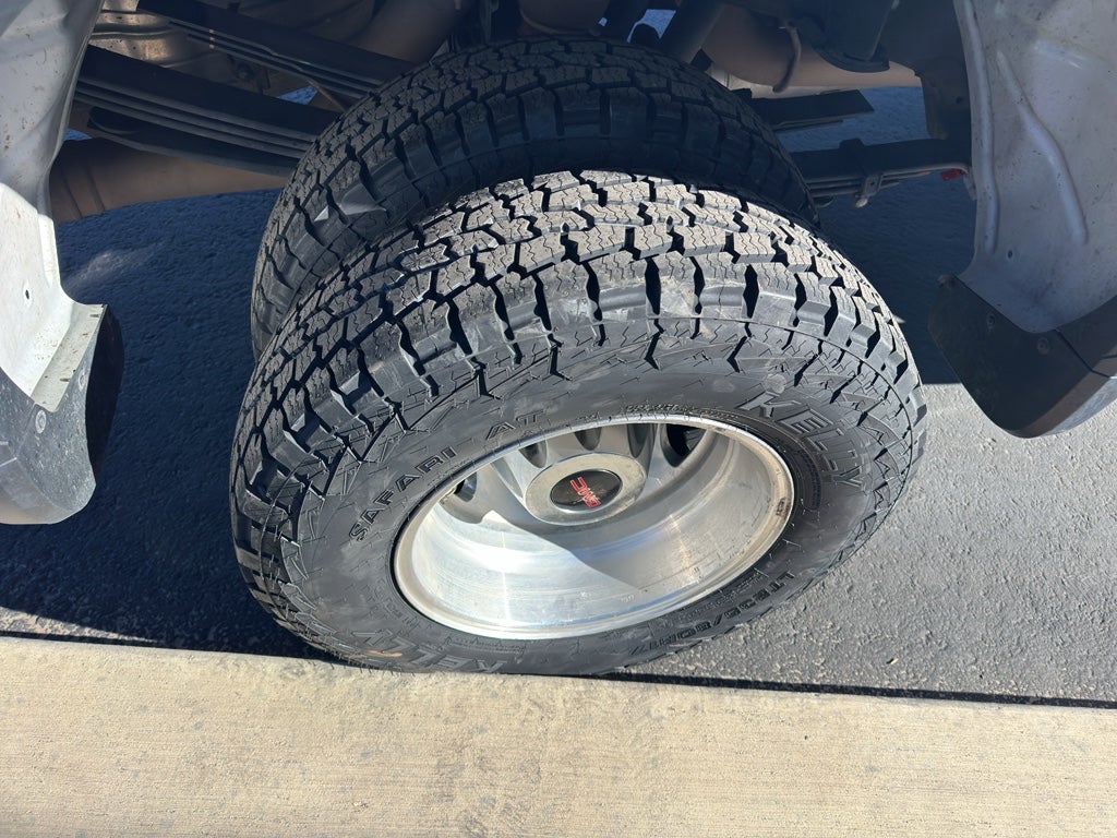 - 17 x 6.5-inch front and dual rear polished forged aluminum wheels